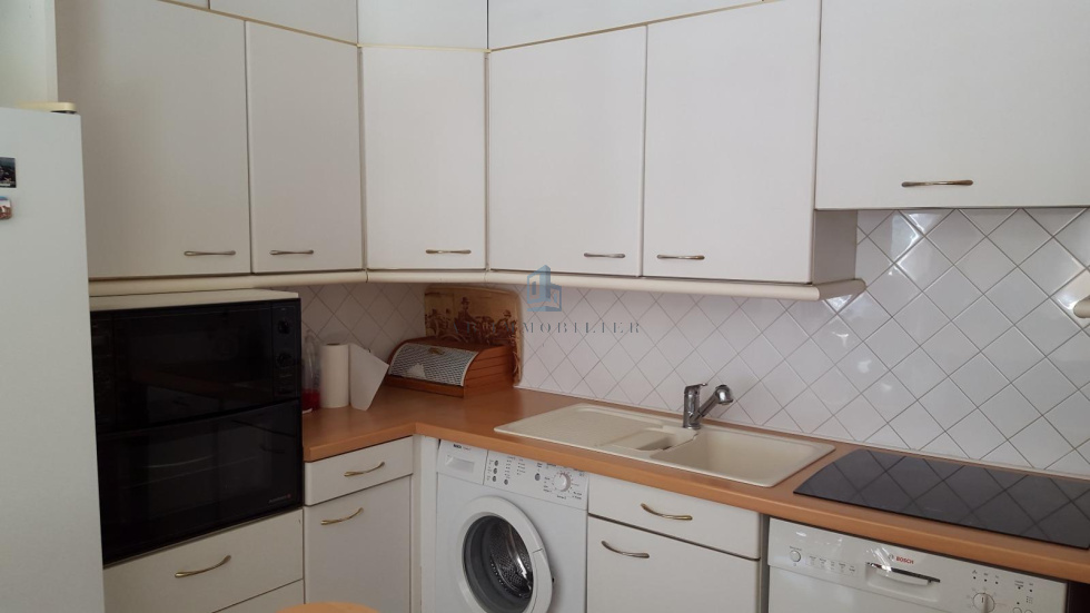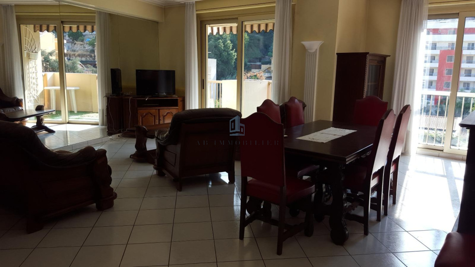 MENTON quartier piscine, 3 PIECES située dans résidence dont la façade a été ravalée récemment, de 82.60 m² (LC), traversant Est-Ouest avec vue bien dégagée, au 4e étage, comprenant : entrée, couloir avec placards, salle de douche, WC séparé, 2 chambres avec placard donnant sur balcon, séjour/salon donnant sur terrasse de 7 m², cuisine US équipée, parking et cave.